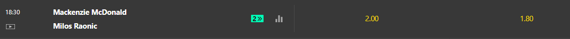 Mára egy érdekes mérkőzést hoztam, Mackenzie McDonald és Milos Raonic találkoznak. A két játékos teljesen eltérő stílusban játszik és fizikai adottságaik is mások.
