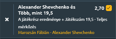 Ha pedig egy erős szelvénytippet akarunk, akkor Shevchenko szettgyőzelmére remek szorzóval lehet fogadni: