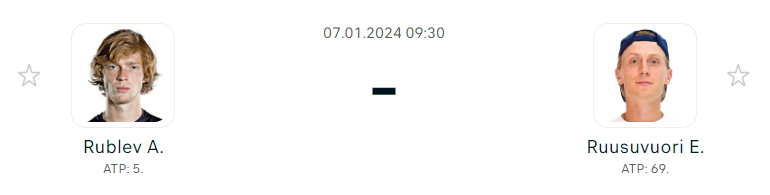 - Ez a meccs eléggé egyértelmű. A finn maximum egy erős középszint, az orosz erős TOP10-es játékos. Rublev tavalyi szezonja nagyon erős volt két salakos ATP tornát nyert, a TOP5-ben végzett. Ezen a tornán nehéz ellenfelekkel találkozott, hiszen Broady és Fils után a szuperformában lévő agresszív és látványos játékkal bíró Jerry Shangot is megverte, mindezeket úgy, hogy a játéka messze nem volt a csúcs, amit ő tud. Ellenben fejben nagyon rendben volt, Arthur Fils és Juncheng Shang ellen is háromszettes meccsen diadalmaskodott. Az orosz játéka megfelelően agresszív, amit tud azt nagyon jól tudja, de eléggé egysíkú. Ha nem jön be, vagy az ellenfél kezelni tudja, akkor hiszti és vereség lehet a vége. De ma erre nem sok esély van.