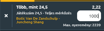 - Egyértelmű, hogy Jerry Shang tehetségesebb teniszező, viszont jóval fiatalabb és a tapasztalat is fontos erény! Mentálisan mindketten erősek és a kemény borítás is jól fekszik mindkettejüknek. A bukik a hollandot várják győztesnek, de szerintem Shang igazolni fogja tehetségét és hoz egy szettet minimum. Sőt! Nem tartom kizártnak a győzelmét sem. A tipp viszont over.