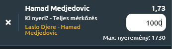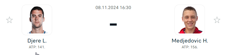 - Györe szívóssága és precizitása előnyt jelenthet neki, különösen ha a hosszabb labdamenetek irányítását át tudja venni, és stabilan tartja az alapvonalat. Azonban Medjedovic hatalmas ütőereje veszélyt jelent Laci számára, hiszen a fedett kemény pályán ez a stílus kifejezetten hatékony, különösen akkor, ha gyorsan és pontosan tud adogatni, ezzel nyomás alá helyezni Györét. Ha Medjedovic tudatosan használja ki erejét, gyors tempót diktálva, akkor felülkerekedhet Djerén. Medjedovic nagyon jó formában van, mentálisan és önbizalom terén ő rendkívül erős és ma hazai közönség előtt versenyezve le tudja győzni a vajdasági magyar fiút!