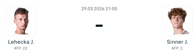 - A cseh játékos adogatása sem jelent valódi menekülőutat. Lehecka első szervája erős, de a variáció hiánya miatt Sinner könnyen olvassa, és kemény pályán különösen agresszívan lép be a returnökbe. (Különsen a miami lassabb kemény borításán!) Ha Lehecka nem tud könnyű szervapontokat szerezni, akkor a labdamenetekben gyorsan hátrányba kerül, hiszen védekezése nem elit szintű! Ha nem ő diktál, a lábmunkája szétesik, és nem tudja visszatenni a pályára a Sinner-féle rakétákat. Minden egyértelműen az olasznak kedvez. Két hasonló stílusú játékosról van szó, de Sinner mindenben egy fokkal jobb, gyorsabb, pontosabb, stabilabb, és sokkal hatékonyabban vált támadásba. Lehecka jelenlegi játékprofilja nem kényszeríti ki azokat a kényelmetlen helyzeteket, amelyekből Sinner hibázni szokott. Éppen ellenkezőleg,olyan labdákat ad neki, amiket az olasz a világon a legjobban szeret. Ezért lesz jó eséllyel sima győzelem most is Sinnernek.