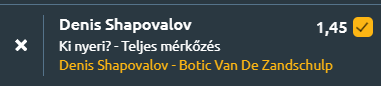 - Mi várható ma? Minden azon múlik, hogy Shapovalov milyen formában lesz fejben! Ha jó, akkor simán lemossa a hollandot a pályáról. Ha nem jó, akkor akár ki is kaphat. Fontos tudni, hogy Botic van de Zandschulp több mint egy hónapja nem nyert mérkőzést. Shapovalov jobb teniszező, és ma ez kijön majd.