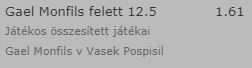 Összeségében ez elvileg egy Monfils-győzelem lesz, ami 1,52-nél sehol nem kapott nagyobb szorzót. Viszont azt gondolom, hogy Pospisil számára ez lehet talán az egyik utolsó alkalom, hogy ATP-tornagyőzelmet szerezzen karrierje során, hiszen harminc évesen már lefelé megy karrierje. Ez megfelelően fel fogja tüzelni az önbizalmát és az akaratát, ezzel megnehezítheti akár Monfils dolgát is. Az egyik szettben legalább rövidítés lesz, vagy az egyik játékos eléri a 7 game-et. Ennek megfelelően Gael Monfils-ra vonatkozó játékszámot célzom be. A tippre több irodánál is 1,6 körüli szorzót adnak!