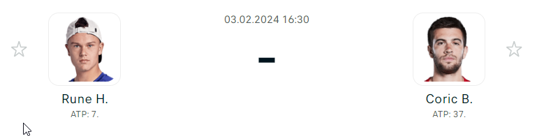 - Coric 27 éves, de ő már volt 12. helyen is a világranglistán! 2017-ben és 18-ban berobbant, nyert két ATP tornát is! Példaképe Goran Ivanisevic és hozzá hasonlóan agresszív játékot játszik! Univerzális teniszező, de a kemény és a gyors borítást kedveli jobban, de elvan salakon is! 2022-ben nyert egy tornát Cincinnatiban, ez volt a visszatérése, tavaly pedig a salakos Hopman Kupában nyert. Hatalmas adogatása van, erős kemény tenyeresek jellemzik.