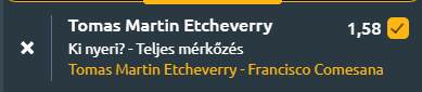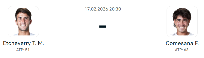 - Aktuális meccs elemzése: Etcheverry Buenos Airesben Cerúndolótól kapott ki, míg Comesana már az első fordulóban búcsúzott Camilo Ugo Carabelli ellen. Az erőviszonyok papíron az előbbi felé billennek, hiszen Etcheverry alapütései jóval erőteljesebbek, különösen a félelmetes tenyerese jelent komoly fegyvert. Bár Comesana salakspecialista, és korábban már legyőzte honfitársát, a védekezése könnyen széteshet, ha Etcheverry ismét jó formát hoz. A múlt heti buenos airesi teljesítmény alapján erre minden esély megvan, így sima Etcheverry-sikerre számítunk!