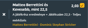 - Berrettini tapasztalata és agresszív stílusa előnyt jelent a fiatal Stricker ellen, különösen a fontos pontoknál. Stricker 16 ásza Kovacevic ellen mutatja, hogy képes nagy szervákra, de Berrettini erősebb tenyerese és stabilabb mentális játéka komoly kihívást jelent számára. Stricker szervái adhatnak neki esélyt, de Berrettini rutinja és erősebb alapvonaljátéka valószínűleg túl erős lesz a kritikus pillanatokban. Berrettini most jóval esélyesebb ezen a gyors borításon.
