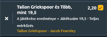 - Griekspoor tapasztalata és erősebb alapvonaljátéka előnyhöz juttatja őt Fearnley ellen, különösen, ha képes úgy játszani, mint Kotov ellen. Fearnley kettős hibái gyenge pontot jelentenek, amit Griekspoor maximálisan ki tud használni. Ha Fearnley összeszedettebb tud lenni a szerváinál, és csökkenti a hibákat, akkor nehéz ellenfél lehet, de Griekspoor stabilabb játéka és nagyobb rutinja esélyesebbé teszi őt ezen a gyors borításon.