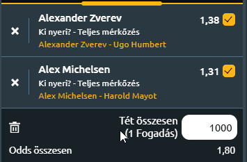 - A. Zverev – U. Humbert: Alexander Zverev alapvetően stabil alapvonaljátékra épít, erős szerva és agresszív tenyeres jellemzi, amivel képes dominálni a labdameneteket. Zverev fizikailag és mentálisan is erős játékos, aki gyakran tartja irányítása alatt a pályát, és bár nem volt csúcsformában, egyre jobban teniszezett és megérdemelten került a döntőbe. Ugo Humbert szintén lendületes játékos, aki gyors teniszt játszik. A francia teniszező jellemzően hamar megüti a labdákat, azonnal támad és ezzel nyomást gyakorol az ellenfelére. Hazai pályán a közönség támogatását is élvezi, ami extra erőt ad neki. A párizsi fedett kemény pályán várhatóan izgalmas döntőt láthatunk kettejük között. Zverev erősebb szervájával és stabil alapvonaljátékával előnyben lehet, különösen, hogy Humbert balkezes szervái az ő erősségének számító fonákjára érkeznek majd. Ugyanakkor Humbert első ütéseinek gyorsasága és agresszivitása megnehezítheti Zverev dolgát, főként ha a német nem tudja kontrollálni a hazai közönség lelkesítését, ami jelentős mentális nyomást is jelenthet. Mivel Zverev jobban tud alkalmazkodni a nehéz helyzetekhez, a jó szerváira támaszkodva és kellő rutinnal, ha sikerül megőriznie higgadtságát, akár három szettben is, de esélyesebb lehet a győzelemre.