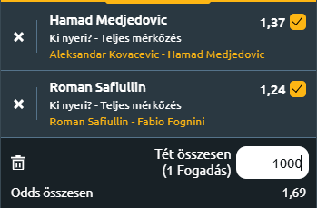 Pont ezt a két mai meccset néztem ki, az oroszt nem szeretem fogadni,illetve torna győzelem után nem fogadom senkire.