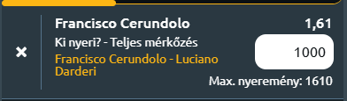 - Két különböző stílusú játékos találkozik, Cerundolo mentális stabilitása, ütőereje-, különösen kiváló tenyeresei alapján salakon esélyes lehet Darderivel szemben.