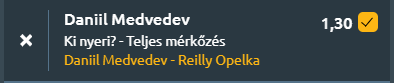 Washington, kemény borítás! Mindkettő jól adogat, de Opelka elsősorban az adogatásából él, Medvedev kiválóan védekezik és fogad, de az adogatáson kívül minden téren jobb, mint az amerikai!