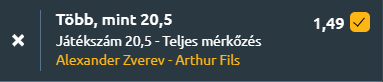 - A fogadóirodák Zverevet tartják esélyesebbnek, az utóbbi időben nem hozott kiemelkedő formát az Australian Open óta. Fils ezzel szemben lendületes játékot mutatott Indian Wellsben, ahol negyeddöntőig jutott, és Miamiban is remekül teljesít. Az egymás elleni mérlegük szerint Zverev legutóbbi találkozójukon nyert, de az is egy szoros háromszettes meccs volt. A mérkőzésen várhatóan Zverev stabil alapvonaljátéka és tapasztalata szembekerül Fils agresszív támadójátékával és erős szerváival. Mivel a francia játékos nagy önbizalommal érkezik és már bizonyította, hogy képes nyomás alatt is jól teljesíteni, szoros összecsapásra lehet számítani. Legalább 21 game-et várok.