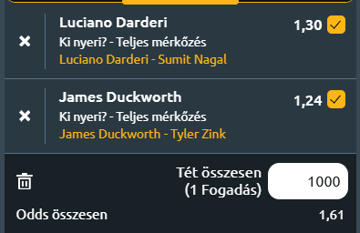 - Luciano Darderi egy tipikus salakpályás agresszor, aki erős alapvonaljátékra építi a stratégiáját. Kemény és pörgős tenyeresekkel irányítja a játékot, szereti az erőteljes, hosszú ütéseket az alapvonalról. Fonákja stabil, de kevésbé támadó, inkább defenzív eszközként használja, hogy megfelelő helyzetbe kerüljön a tenyeres befejezésekhez. A mozgása dinamikus és gyors, jól alkalmazkodik a salak csúszós felületéhez, és hatékonyan védekezik, amikor arra van szükség. Mentálisan erős, technikailag képzett, szeret küzdeni, és nem adja fel könnyen a pontokat, ami salakon különösen fontos. Szervája nem kiemelkedő, de megfelelően variálja, és első szervájával igyekszik gyorsan előnybe kerülni. A hosszabb labdamenetekben sem esik ki a ritmusból, de ha túl sok fonákot kell ütnie, vagy ha rákényszerítik a védekezésre, sebezhetővé válhat. Még csak 23 éves, de van már 1 ATP tornagyőzelme, valamint stabilan ott van a TOP100 közepén, jelenleg a 63. helyen. Sumit Nagal szintén salakspecialista, aki kiváló mozgásával és kitartásával tudja felőrölni ellenfeleit. Alapjátéka a jó védekezésből és a hosszú labdamenetekből építkezik, de képes váratlanul támadóvá válni, ha lehetősége adódik. Tenyerese az egyik legnagyobb fegyvere, mivel jól pörgeti és éles szögeket tud elérni vele. Fonákja kevésbé hatékony, szervája kifejezetten gyenge. Nagal rendkívül kitartó, és fizikailag jól bírja a maratoni labdameneteket, ami salakon hatalmas előnyt jelent. Mentálisan ő is erős. Kettejük közül egyértelműen Darderi a képzettebb, sokoldalúbb és fizikai téren is erősebb. Illene simán vernie Nagalt.