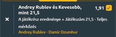 - Rublev egy topjátékos, még akkor is, ha éppen nincs jó formában, Dzumhor viszont egy mentálisan gyenge, challenger-szint, akiben bár van tehetség, mentális téren gyenge. Minden körülmény azt jelzi, hogy Andrey Rublev dominálhatja ezt a mérkőzést és simán nyeri azt!