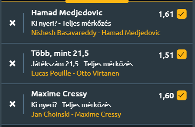 Ez a három gondolatom van, a legerősebb Medjedovic, de szelvényt nem ajánlok mára.