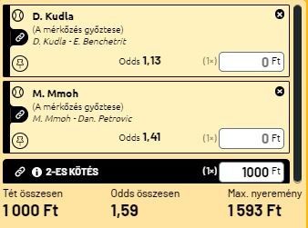 2021.01.11 hétfő reggelre két meccset hoztam az AO selejtezőjéről. Kudla - Benchetrit és Mmoh - Petrovic. 1.59 az eredő, az esélyek jók.