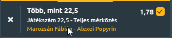 - Az AO pályái sokkal gyorsabbak, mint ez az Indian wells-i pályaborítás! Fábi mégis elverte itt a bikatenyereséről ismert Cerundolót, a hatalmas szervát adó Cilicet, valamint Fritztől is szettet lopott! Fábi nagyon jól fogad, képes semlegesíteni az erőjátékot. Popyrin pedig nem tartozik a kiemelt kategóriába! Ennek ellenére az ausztrál játékos az esélyesebb papíron, de nagyon meg lennék lepve, ha Fábi nem tudná szorossá tenni a meccset! Tipp: több mint 22,5 game – 1,78