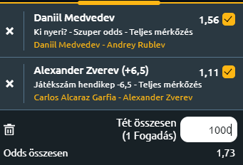 - D. Medvedev – A. Rublev: Szerintem ez egy jól fogadható meccs. A két orosz közül egyértelműen Medvedev az, aki sokkal komplexebb, sokrétűbb teniszező, talán csak a hálónál lehet megverni, ahogy Novak Djokovic is tette. Ha a legjobb formáját nyújtja Medvedev, akkor talán csak Djokovic tudja legyőzni. Rublev egy rendkívül agresszív teniszező, de csak egy játéka van. Ha az nem jön be, akkor vége a dalnak. Egymással 7-2-re állnak és tudom, hogy pont tavaly ezen a Nitto ATP Finals tornán verte meg Medvedevet Rublev, de most nem ezt várom. Medvedev győzelmére tippelek 1,56