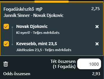 Aminek egyszerű oka van. Az hogy Djoko jobb teniszező az nem kétséges, de... Sinnernek fog szurkolni mindenki. Nem igazán lesz megosztott szurkolás,mint egy GS vagy más döntőben. Itt minden pont után ováció Sinnernek, ez egy idő után a legnagyobbakat is kitudja zökkenteni. Sinnernek ez vagy nyomás lesz vagy él vele. Neki ez óriási motiváció a hazai pályán az esetleges első nagy győzelem. Djokonak egy a sok közül, nincs itt szó őrségváltásról, ha nyer Sinner akkor sem. Djoko lenyilatkozta, hogy a fő cél az évvégi elsőség, a többi bónusz. Majd akkor lesz őrségváltás ha januárban AO n elkapták, az az ő igazi terepe, lassabb nyitott keménypálya!