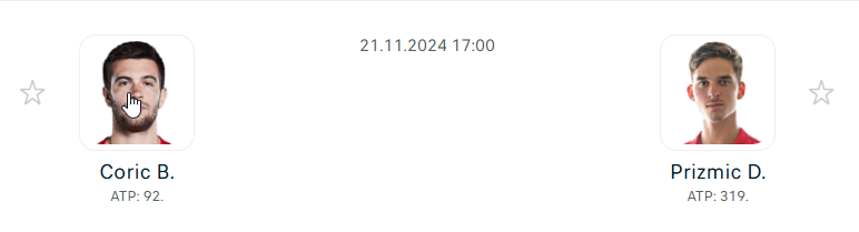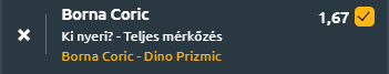 - Coric tapasztalata és mentális ereje előnyt jelenthet, különösen a fontos pillanatokban. Stabil alapvonaljátéka és védőmunkája nehéz helyzetbe hozhatja Prizmicet, aki még nem mindig képes hosszú labdamenetekben konzisztensen játszani. Coric inkább a türelemre és a hibák kikényszerítésére építhet, ami a tapasztalatlan és fiatal Prizmicnél gyakorta előfordul!