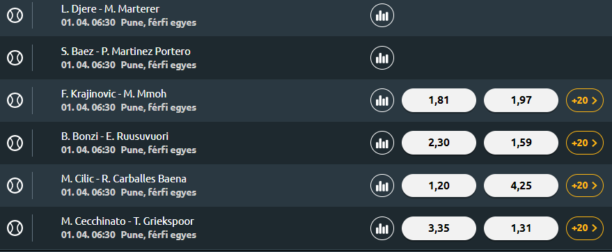 - A Bonzi - Ruusuvuori párosban mindkettő jó keményen, de Bonzi inkább védekező stílus, a finn pedig jól szervál, jól támad. Itt is az over 22,5 game lehet jó.