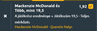 - Mackenzie McDonald játékstílusa a taktikus alapvonaljátékra épül, amelyet kiváló mozgással és precíz ütéskivitelezéssel egészít ki. Gyors, kiváló lábmunkája van és precíz ütései. Jobbkezes, kétkezes fonákot használ, és elsősorban a kontrollált labdamenetekben érzi jól magát. Játéka nem a nyers erőre, hanem az ellenfél tempójának visszafordítására és a ritmusváltásra épül, így különösen hatékony lehet olyan ellenfelek ellen, akik erőből próbálnak dominálni. És Quentin Halys pontosan ilyen! McDonald képes hosszú labdameneteket játszani, miközben türelmesen építi fel a pontokat, és mentálisan is stabil, ami különösen fontos a kiélezett mérkőzéseken.