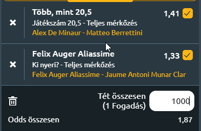 - Itt Auger Aliassime a képességeit és a tehetségét illetően sokkal jobb, ráadásul a kemény borítást is jobban kedveli. Munar inkább salakon jó. Viszont mentálisan a spanyol a jobb! Viszont az első két fordulóban összeszedetten és magabiztosan teniszezett a kanadai, szettveszteség nélkül hozta a meccseit. Ha ma is úgy játszik, nem lehet gond Munar ellen sem.