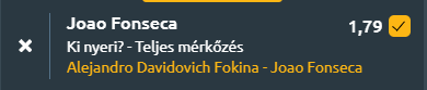 - Kettejük korábbi egyetlen találkozóján Fonseca nyert, miután Fokina feladni kényszerült, de az addigi kiegyenlített játék azt sejteti, hogy most is szoros csatára van kilátás. A döntőben a tapasztalat és a fiatalság lendülete feszül majd egymásnak – és bár Fokina rutinja sokat érhet, Fonseca tenisztudása, tehetsége, ösztönszerű zsenialitása és mentális ereje már most fölényt jelent majd!