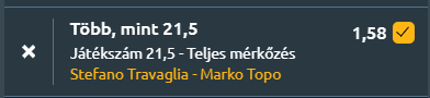 - Mindkét játékos jó formában van, Topo meg fogja szorítani Travagliát, így minimum 22 game várható.