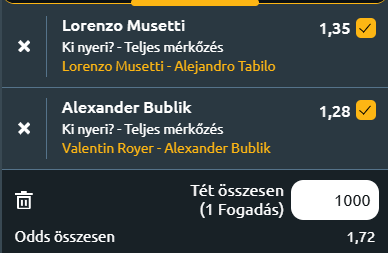 - Musetti technikailag kifinomult játékos, aki különösen az egykezes fonákjával és változatos ütésrepertoárjával képes dominálni a labdameneteket. Az olasz teniszező a kemény pályás borításon is magabiztosan mozog, ami Chengduban előnyt jelenthet számára. Emellett mentálisan is stabil! A korábbi ATP-tornákon szerzett tapasztalata révén jobban kezeli a döntővel járó nyomást, míg Tabilo számára ez ritkább lehetőség. Musetti képes alkalmazkodni az ellenfél játékstílusához, és ha sikerül semlegesítenie Tabilo balkezes szerváit, akkor könnyen átveheti az irányítást. A mérkőzés várhatóan szoros lesz, de ha Musetti ki tudja használni technikai fölényét és mentális erejét, akkor jó eséllyel ő emelheti magasba a Chengdu Open trófeáját!