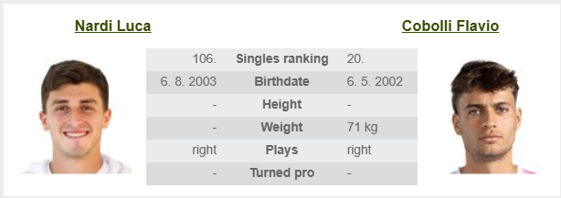 - Luca Nardi-általános jellemzés: Luca Nardi olasz teniszező, már inkább ATP-szint, mint Challenger-lovag, de még ATP tornát nem nyert. Challengert viszont már hetet, salakról is, keményről is! Profi karrierje során komoly előrelépést tett, legjobb világranglista-pozíciója a 67. hely volt és már komoly ATP-rutinja is van már. Nardi teniszét a keménypályás tapasztalat és az agresszív alapvonaljáték jellemzi. Gyors, keményen és pontosan üt és van benne ütőerő is. Még fiatal, bőven van benne potenciál és mivel mentálisan is jó várhatóan előrelép majd.