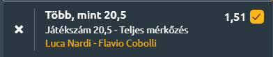 - Aktuális meccs elemzése: Nardi a legutóbbi körben magabiztos, kétszettes győzelemmel lépett tovább Basilashvili ellen, és az egymás elleni mérlegben is előnyben van Cobollival szemben, hiszen a korábbi egymás elleni összecsapások többségét megnyerte, főleg kemény borításokon bizonyult jobbnak. Cobolli jóval előrébb van a világranglistán, ám a 2026-os idényben kevés mérkőzést játszott eddig, formája pedig még korántsem alakult ki! Nardinak 2/2 a mérlege idén, Cobollinak 4/4, így összességében kiegyensúlyozott meccs várható.