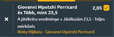 - Giovanni Mpetshi Perricard-általános jellemzés: A francia játékos egy erőgép! Az ébenfekete bőrű játékos rendkívüli ütőerővel rendelkezik, erőteljes és domináns adogatójáték jellemzi. A 2,03 m magas játékos az ATP Tour egyik legnagyobb szerválója, aki nemritkán az adogatásával döntő pontokat szerez, sőt, például a Wimbledonban, történelmi sebességrekordot is elért második szerváival is! De ennek az erős adogatójátéknak megvan a hátránya is! Védekezésben jóval gyengébb, a hosszú alapvonalrali párbajok kevésbé jellemzik játékát, ha valaki képes kezelni a bombaszervákat, és képes stabilan visszaadni a labdát, akkor Mpetshi Perricard könnyen verhető. Összességében tehát szélsőségesen erős adogatással és a gyors pontok kialakítására törekvő teniszező, aki képes bármely ellenfelet „nulláról felépített” adogatással meglepni, de minden másban jóval gyengébb.