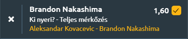 Általános meccselemzés: Itt Brisbane-ben Kovacevic hozz a rá jellemző stabilitást, megverte a most visszatérő Kyrgiost, utána a darálógkép Cam Norrie-t, majd legutóbb a szervájával vizet fakasztó Mpetshi Perricardot is. Ma viszont egy olyan játékos érkezik, aki technikai téren sokkal erősebb, valamint kiváló formában van! Nakashima kiemelkedően jó formában van! Három olyan játékossal végzett eddig, akik mind erőteljes alapvonaljátékot játszanak! Davidovich Fokinával kezdte, itt az első szett még 7-6 volt, de a második már könnyebben ment, utána két olyan játékos következett a sorban, akik minőségre és játékstílusra is hasonlítanak Kovacevichez, Quentin Halys és Rafael Collignon. Nakashima játszi könnyedséggel verte meg mindkettőt 2-0 arányban! Ez vár szombat hajnalban Kovacevicre is! Akár 2-0-ra is meg lehet próbálni.