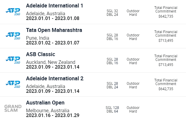 - Január második hetében szintén két torna kerül megrendezésre, az ASB Classic, amelyet Új Zélandon, Auckland városában rendeznek, illetve az Adelaide International 2. Itt mindkettőt figyeljük majd. Aztán január 16-tól január 29-ig az év első Grand Slam-versenye következik, az Ausztrál Open, amelyen idén részt vesz Novak Djokovic is. De lesz külön beharangozó írás is az AO-ról.