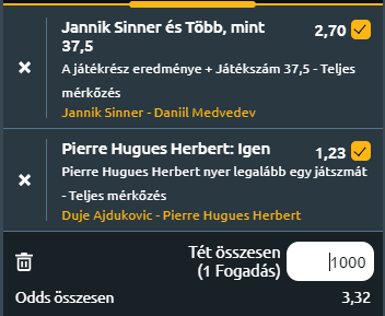 Az első meccsem, természetesen, a J. Sinner - D. Medvedev AO-döntő lesz. Sinner ellentmondást nem tűrő módon úgy verte meg az elődöntőben Novak Djokovicot, hogy szerbnek még csak break labdája sem volt! De mindezek ellenére én nem azok közé tartozom, akik Medvedev ellen még elsöprőbb Sinner-győzelmet várnak. Djokovic ugyanis nagyon gyengén játszott az elődöntőben! Magához képest kifejezetten visszafogott volt, messze nem azt a játékot nyújtotta, amit tud. Vagy tudott! Mert bár a szerb a meccs után azt nyilatkozta, ezzel a vereséggel nem a vég kezdődött el, és nagy tervei vannak még az idei évre. Hát szerintem idén már nem nyer Grand Slam tornát Djokovic és ezzel a vereséggel valóban beköszönt a teljes korszakváltás! És hiába játszott Medvedev minden meccsén nagyon sokat és kellett a sírból visszahozni a meccseket, ma ő is rendkívül motivált lesz és sokkal jobban meg fogja szorongatni Sinnert, mint Djokovic! Éppen ezért Sinner-győzelmet várok, de minimum egy szettet az orosz is megszerez majd és szorossá teszi a meccset!