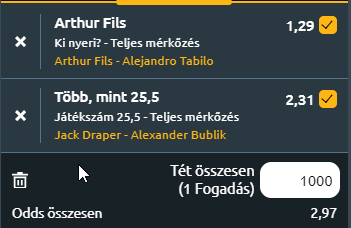 - A mai győztes szelvény Arthur Fils veri Alejandro Tabilót. Tabilo elsősorban salakos, kétharmad egyharmad arányban játszik salakos és egyéb meccseket kábé karrierje során, de az is igaz, hogy van egy CH-tornagyőzelme kemény fedett tornáról is. Itt a kvaliból kött, Borna Gojót három szettben verte meg, már ez is meglepetés volt, aztán Van De Zandschulp kettőben, ez még nagyobb. Valami probléma volt a hollanddal, mert ő ennél sokkal jobban is tud teniszezni. Aztán jött Norrie, aki feladta! Szerintem itt ezen két meccs esetében inkább a közelgő AO volt előtérben, mint a mindenáron nyerni akarás. Fils viszont az egyik legtehetségesebb fiatal, aki már most 19 évesen 35. a világranglistán, van ATP tornagyőzelme, univerzális játékos és döntőzött a Next Gen VB-n. Kemény borításon le kell mosnia Tabilót!