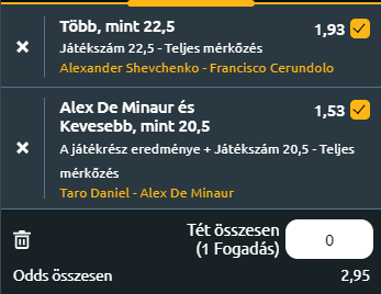 - Taro Daniel a japánok magas erőjátékosa. Mentálisan is nagyon jó, erős alapütésekkel, de technikailag nem a csúcs. De Minaur pedig egyrészt a Touer egyik legjobb védekező játékosa, másrészt a lassabb talajtípus őt segíti ma. Két sima szettben nyer, azt várom.