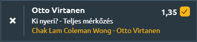 - Coleman Wong egy fiatal hongkongi játékos, aki lendületes alapvonaljátékot játszik, kiváló lábmunkával és energikus, gyors mozgással. Az adogatása nem tartozik a legerősebbek közé, viszont gyors, mozgékony és technikás. Itt a selejtezőből indult, így már négy füves megnyert meccse van. Virtanen kifejezetten az adogatásra és a kőkemény tenyeresekre épülő agresszív erőteniszt játszik, kifejezetten a kemény borításokat és a füves pályát szereti. Magas játékosként erős, lapos szervát üt, és gyakran próbálkozik nyerő leütésekkel már a return után. Kevésbé mozgékony és kevésbé technikás, mint Wong, de nagyobb az ütőerje és agresszívabb. A gyors borítás Virtanen stílusának kedvez inkább. A finn játékos erőteljes szervái és lapos tenyeresei kifejezetten veszélyesek lehetnek ezen a borításon, ahol a rövidebb labdamenetek és a gyors befejezések gyakoriak. Wong mozgékonyabb és technikásabb de füvön nem ez a stílus a nyerő. Virtanen győzelme várható!