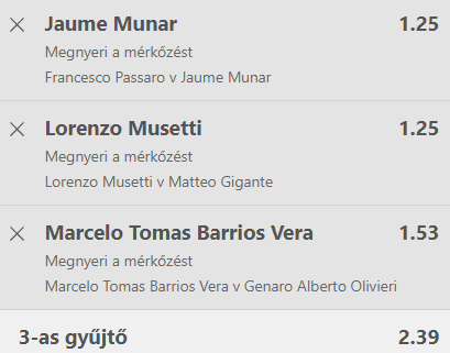 A szelvényen: Barrios Vera, Musetti és Jaume Munar 2,39-ért