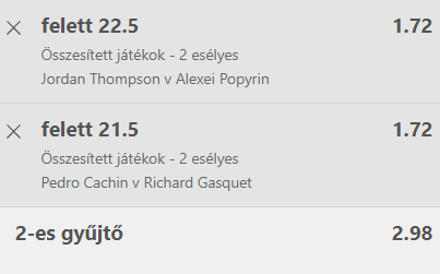- Az elődöntők következnek az eheti challenger tornákon is. Jordan Thompsont azért szeretem, mert ő stabilan hozza azt, amire lehet nála számítani. Márpedig Alexej Popyrin esetében már nem lehet azt mondani, hogy ő az egyértelmű esélyes. Popyrin magas, kiválóan szervál, de nem csak kemény borításokon jó, hanem salakon is! 22 éves, tehetséges srác, már most megvan az első ATP-tornagyőzelme, mégpedig Szingapúrból 2021-ből. Idén pedig a Bordeaux-challengert nyerte meg. Fejben erős, évről-évre jó lesz. Thompson rutinosabb, ez biztos, de tenisztehetségben nincs azon a szinten, ahol a másik ausztrál! Nincs ATP-tornagyőzelme sem. Viszont most füvön jó formában van, megnyerte a Surbiton CH-t a múlt héten. Ez a meccs overes erőteljesen. Popyrin jó játékos, azt a Pénisztont verte sima kettőben legutóbb, aki idén Jack Drapert és Mannarinót is megverte már füvön. Szóval Thompsonra lehet számítani, és ezen a meccsen már nem ő az esélyes! Over 22,5 most 1,72-őt ér. A másik meccsen Dan Evans erősebbnek tűnik, mint Jack Sock, de az amerikaival óvatosnak kell lenni, egykor TOP10-es játékos is volt és nincs rossz formában. Ezt kihagyom.