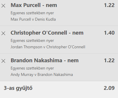 Kudla minimum egy szett, Thompson minimum egy szett, Murray minimum egy szett! A három együtt 2,09!