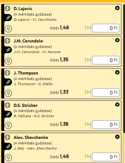 Természetesen nem kötésben, hanem valami mellé kiegészítőnek. Számomra a legerősebb Stricker és Thompson. Őket összerakom. De a fiatal és nagyon tehetséges orosz Shevchenko is jó szorzóért nyerhet ma Sels ellen.