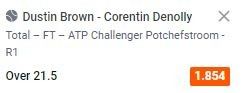Egyre jobban meg kell becsülnünk a kisebb CH-tornákat, hiszen az ATP1000-res Paribas Opent törölték a koronavírus-fertőzés miatt. Dél-Afrikában rendezik meg a Potchefstroom Challengert, ahol az első fordulóban a rutin és a fiatalság találkozik egymással. A háló egyik oldalán a német Dustin Brown (246.), a másikon a francia Corentin Denolly (329.) lesz. Lássuk, mire érdemes fogadni.