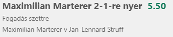- Németországban két német jutott a döntőbe, mindketten alapvetően magas-, remekül szerváló játékosok. Ennek ellenére jók salakon is. A rutin Struff mellett szól. A 32 éves versenyző 5 CH-tornagyőzelemmel rendelkezik, vegyesen salakról és keményről. Karrierje már lefelé fut. ATP-tornát még sosem nyert, de sokszor volt közel hozzá. Legjobbja a 29. hely volt. Marterer 27 éves, naki 7 CH-tornája van, szintén vegyesen. Univerzális játékos. Valamivel alacsonyabb, mint Struff (2cm), de majd 10 kilóval könnyebb. Ennek-, és a fiatalabb életkorának köszönhetően agilisabb, gyorsabb. Ő is remekül szervál. Nagyon kiegyenlített meccs lesz, a bukik Struffot várják győztesnek én inkább Marterert. Mégpedig azért, mert idén sokkal több salakos meccset játszott 25-öt és ebből 15-öt meg is nyert, míg Struffi csak négyet. Igaz azokat megnyerte. Valamint 2018-ban egyszer már találkoztak salakon és akkor Marterer nyert.