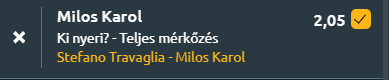 - Stefano Travaglia az olasz tenisz egyik ismert alakja, aki karrierje csúcsán a világranglista 60. helyéig jutott, és stabil főtáblás szereplője volt a Grand Slameknek, de most már karrierje lefelé megy, viszont a rutinja és a mentális ereje nagyon sokat ér! Játékstílusát a kemény alapvonaljáték és a jobbkezes, kétkezes fonák jellemzi, amely különösen salakon és kemény borításon hatékony. Travaglia erősségei közé tartozik a stabilitás és a mentális állóképesség , de technikai téren kevésbé hatékony. A ranglistán való visszaesése óta nehezen találja újra a formáját, és a Challenger-szinten sem tud tartósan dominálni, különösen a gyorsabb borításokon, ahol a reakcióideje és mozgása kevésbé hatékony. Milos Karol a szlovák tenisz fiatal reménysége, aki 22 évesen már több ITF- és Challenger-tornán is letette névjegyét. Karol játéka 198 cm-es magasságával, remek szervájával különösen a fedett kemény borításokon érvényesül. Játéka az erőteljes szervákra és a gyors pontbefejezésre épül, ami a modern teniszben egyre fontosabb.