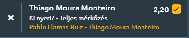 Semenistaja esetében már nem vagyok annyira biztos a győzelemben. Idén már játszottak szoros meccset, és most is hazai pálya előnyben van a spanyolnak. Alapvetően Semenistaja a jobb, de itt én jobban érzek inkább egy kisebb over határt, 17.5+ @ 1.37 , ami nem olyan sok játék. A legutóbbi egymás elleni találkozón idén salakon 27 játékot játszottak összesen,de itt is várom ToMMo véleményét.