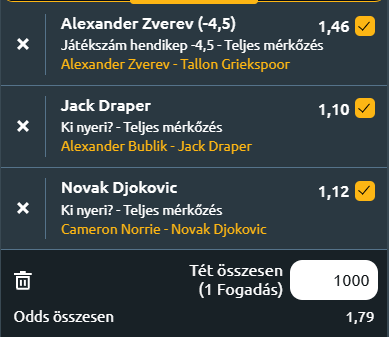 - C. Norrie – N. Djokovic: A Cameron Norrie – Novak Djokovic párharc igazi erőpróba lehet a brit számára, mert az egykori világelső még most is minden téren jobb nála, egyetlen dolgot kivéve a kondíciót. Norrie balkezes játékával, kiváló lábmunkájával és taktikus alapvonaljátékkal próbálja megnehezíteni ellenfelei dolgát, ráadásul salakon is jól érzi magát, hiszen hosszú labdamenetekben és fizikális párharcokban is kitartó. Djokovic ezen a területen a történelem egyik legjobbja. A szerb klasszis az első fordulókban ugyan még nem játszott kirobbanó formában, de rutinjával, elképesztő védekezésével és mentális stabilitásával folyamatosan építkezik a tornán. Djokovic különösen akkor szokott erősödni, amikor már komolyabb ellenállásba ütközik, és a brit játékát valószínűleg gyorsan kiismeri majd. Nem kérdés, hogy ki lesz a jobb ezen a meccsen!