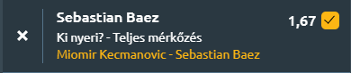 - A szerb Kecmanovic alapvetően minden borításon képes jó teljesítményre, de igazán kemény pályán érzi otthon magát, ahol lapos, gyors ütései jobban érvényesülnek. Alapvonaljátékos, dinamikus erős játékos, de szervája nem tartozik a legjobbak közé. Kiváló tenyerese van, próbál agresszívan letámadni és ehhez a kemény pályák illenek jobban. Baez ellenben kifejezetten salakspecialista! Az argentin játékos rendkívül gyors, alacsony súlypontja miatt kiválóan csúszik a borításon, és a hosszú, fizikailag megterhelő labdamenetek sem zökkentik ki. A játéka nem az erőre, hanem a kitartásra, a pontépítésre és az ellenfél hibára kényszerítésére épül. Tenyerese stabil és pontos, fonákja megbízható, de kevésbé agresszív. A szervája nem különösebben erős, de jól helyezi, és elsősorban az adogatás utáni mezőnyjátékban érzi magát otthon. A salakon Baez játéka érvényesül sokkal inkább!Az ő labdabiztonsága, mozgása és türelme és védekező képessége működni fog, Kecmanovic kemény pályán megverné a kis argentint, de salakon nem fogja!